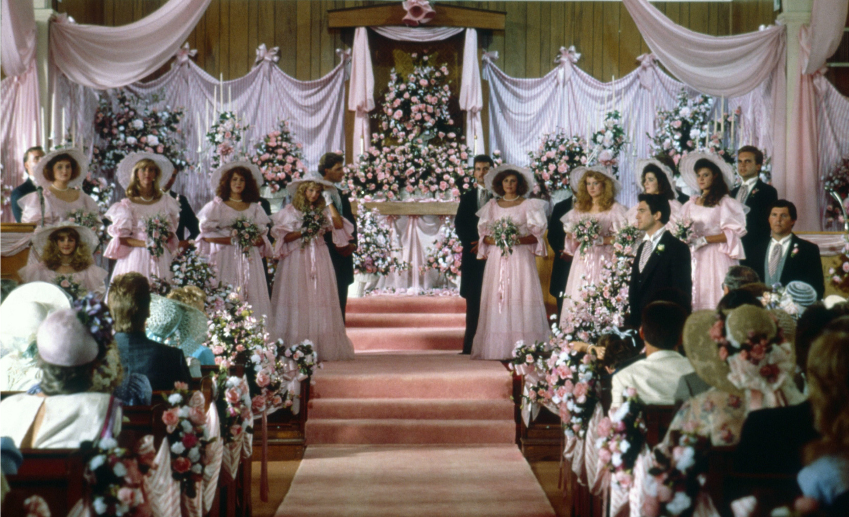 In the Oscar-nominated film adaptation of the 1987 play of the same name, this scene of "Steel Magnolias" showcases Shelby's (Julia Roberts) iconic, "blush and bashful" wedding ceremony—hosed down with Pepto Bismol-pink hues.